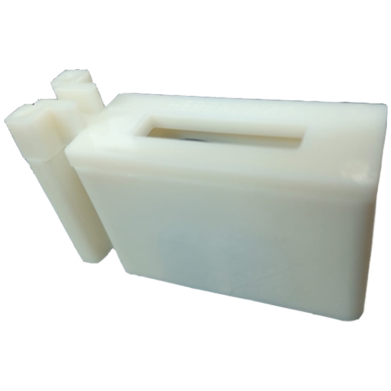 Carretilla cuerpo de nylon para línea corrediza de 3". Ensamble rápido, con 2 posiciones de altura para balero de nylon. Soporte máximo de balero: 30 kg.
