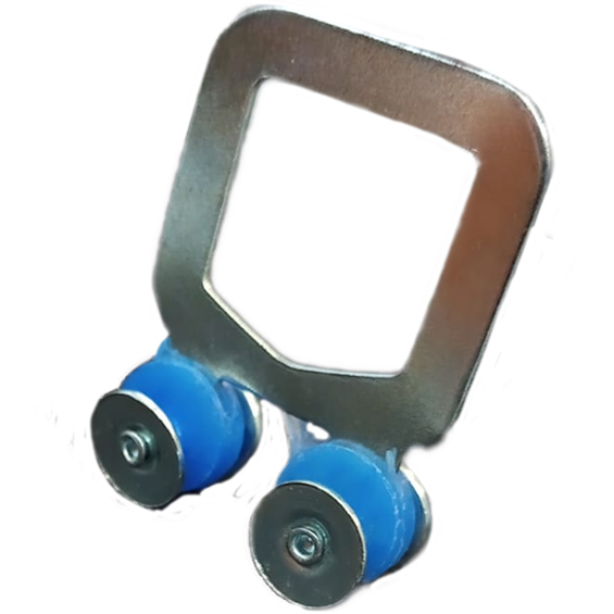 Carretilla Gleirol para perfil de closet, cuerpo de lámina de acero, balero de nylon. Soporte máximo de balero: 10 kg.