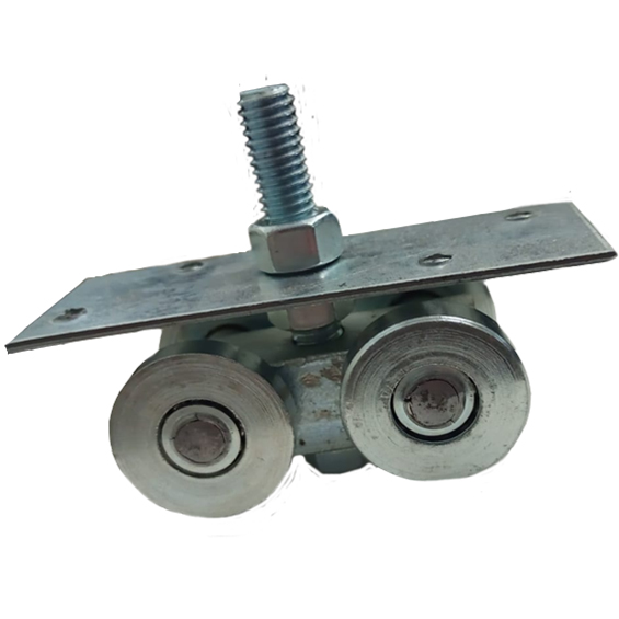 Carretilla cuatro baleros rodaja grande de acero, para puertas corredizas. Peso Máximo 200kg por par.