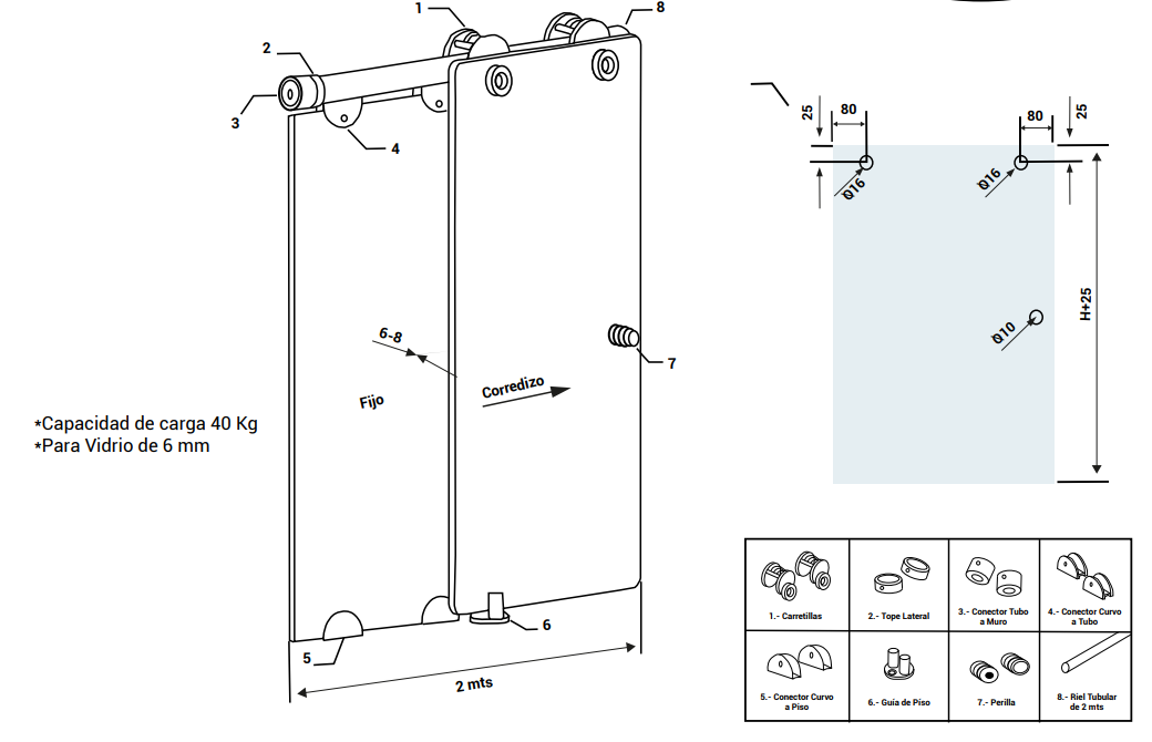 - Para vidrio de 6 mm, 8 mm y 10 mm.