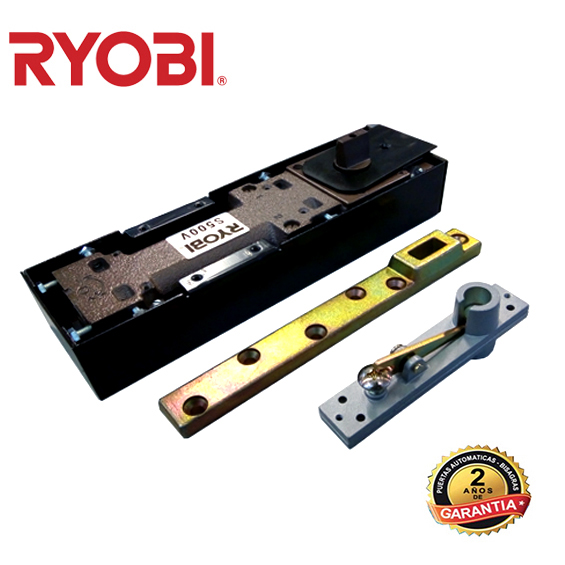 Bisagra de piso Ryobi modelo S500V para puertas de tráfico intenso. Freno a 90º en ambas posiciones y apertura de 175º.
