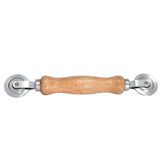 Carrucha de madera para fijar vinil en el mosquitero. Rodaja de acero, cóncava y oval