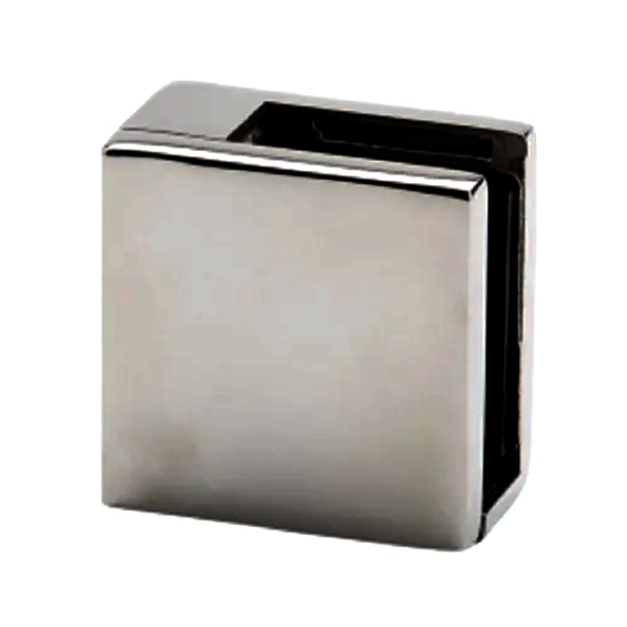 Conector grapa con base plana para fijar a muro ó piso y base curva para fijar a poste, no requiere resaque, para barandal con base curva o plana.