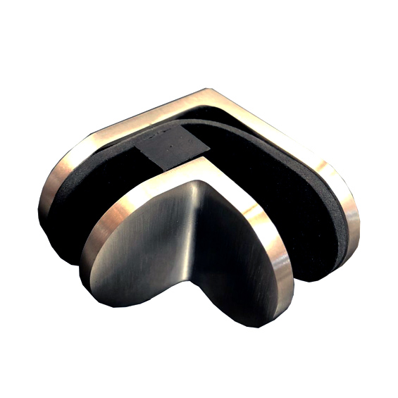 Conector esquinero curvo de acero inoxidable.