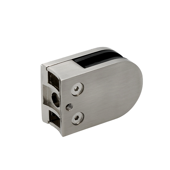 Conector grapa con base curva para fijar a poste, no requiere resaque. Acero Inoxidable 304.