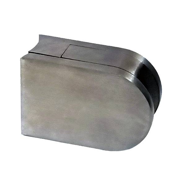 Conector grapa con base curva con tope para fijar a poste de acero inoxidable 304.