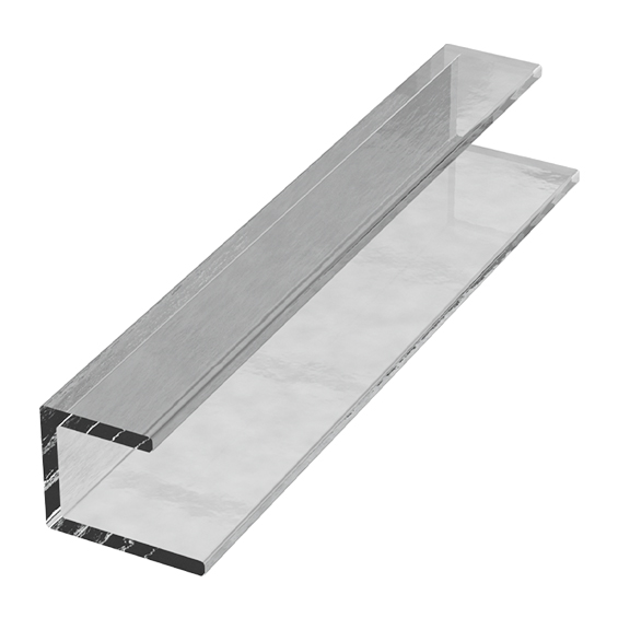 Perfil de policarbonato tipo "U" de 6m de largo, para lámina de 6mm de espesor.