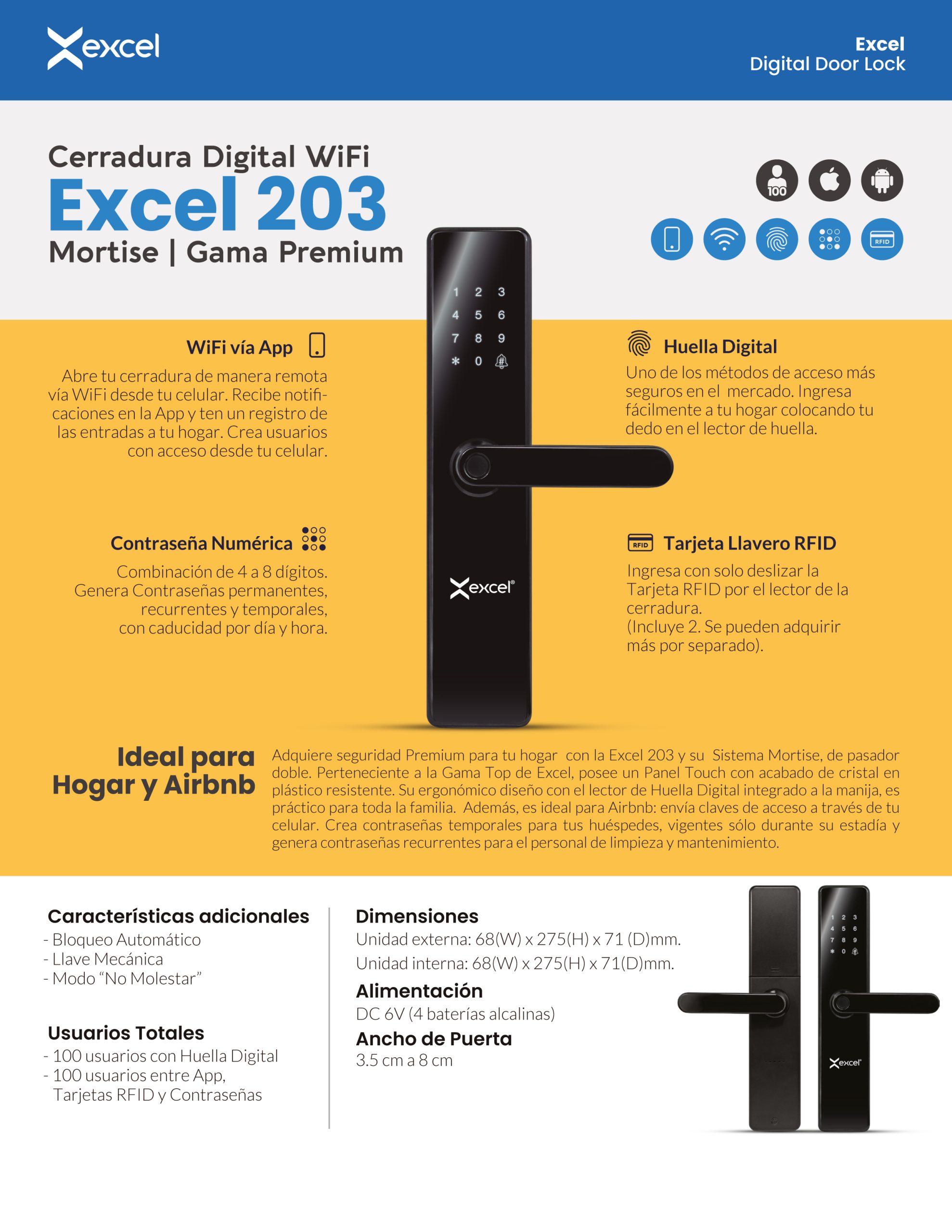 Lector de Huella, Contraseña Numérica, Tarjeta RFID y Llave Mec&aaute;nica.